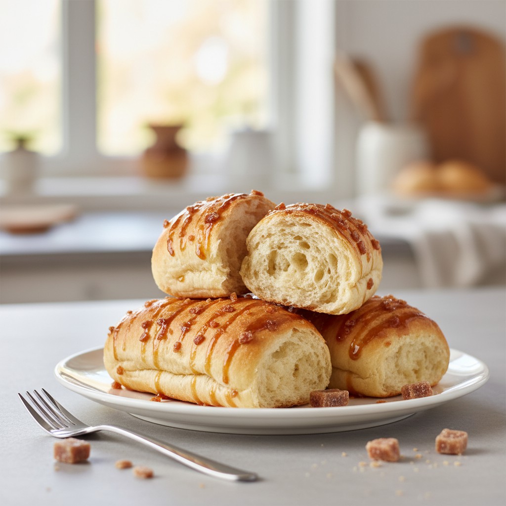 Le petit pain au lait et éclats de caramel est une viennoiserie moelleuse, douce et gourmande, enrichie de morceaux de caramel croquant. Cette recette, inspirée des traditions boulangères françaises, marie la tendresse d’une pâte au lait à la gourmandise du caramel, pour un résultat à la fois authentique et accessible. Parfait pour le petit-déjeuner ou le goûter, il séduit par sa texture filante, son parfum délicat et ses touches sucrées. L’ajout de caramel apporte une note moderne à ce classique, tout en restant équilibré sur le plan nutritionnel si l’on dose avec justesse. La réussite de cette recette repose sur la maîtrise du pétrissage, du façonnage et de la cuisson, pour obtenir des pains bien levés, dorés et fondants.
