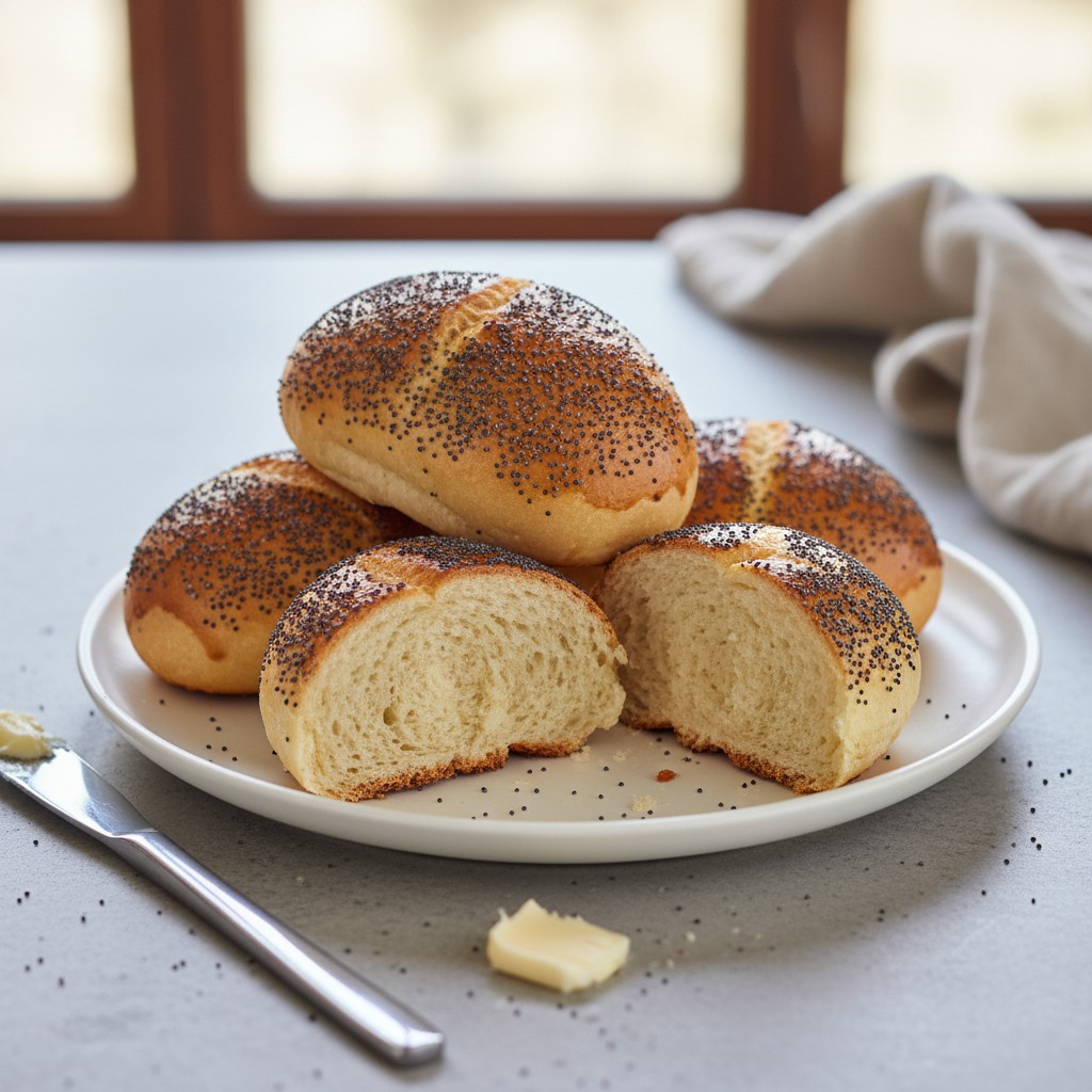 Le petit pain au lait et graines de pavot est une viennoiserie moelleuse, légèrement sucrée, appréciée au petit-déjeuner ou au goûter. Sa mie tendre et sa croûte fine, parsemée de graines de pavot, offrent un contraste subtil entre douceur et croquant. Originaire de la tradition boulangère européenne, ce pain au lait se distingue par sa simplicité et sa polyvalence : il accompagne aussi bien les confitures que les garnitures salées. La recette proposée privilégie l’équilibre nutritionnel (moins de sucre, matières grasses maîtrisées) sans sacrifier la gourmandise ni la texture authentique.