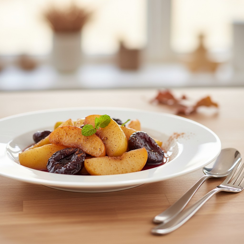 - Retirez la poêle du feu. Servez la poêlée de fruits chaude ou tiède, décorée de feuilles de menthe fraîche. Vous pouvez l’accompagner d’une boule de glace vanille ou d’un yaourt nature pour un dessert encore plus gourmand.