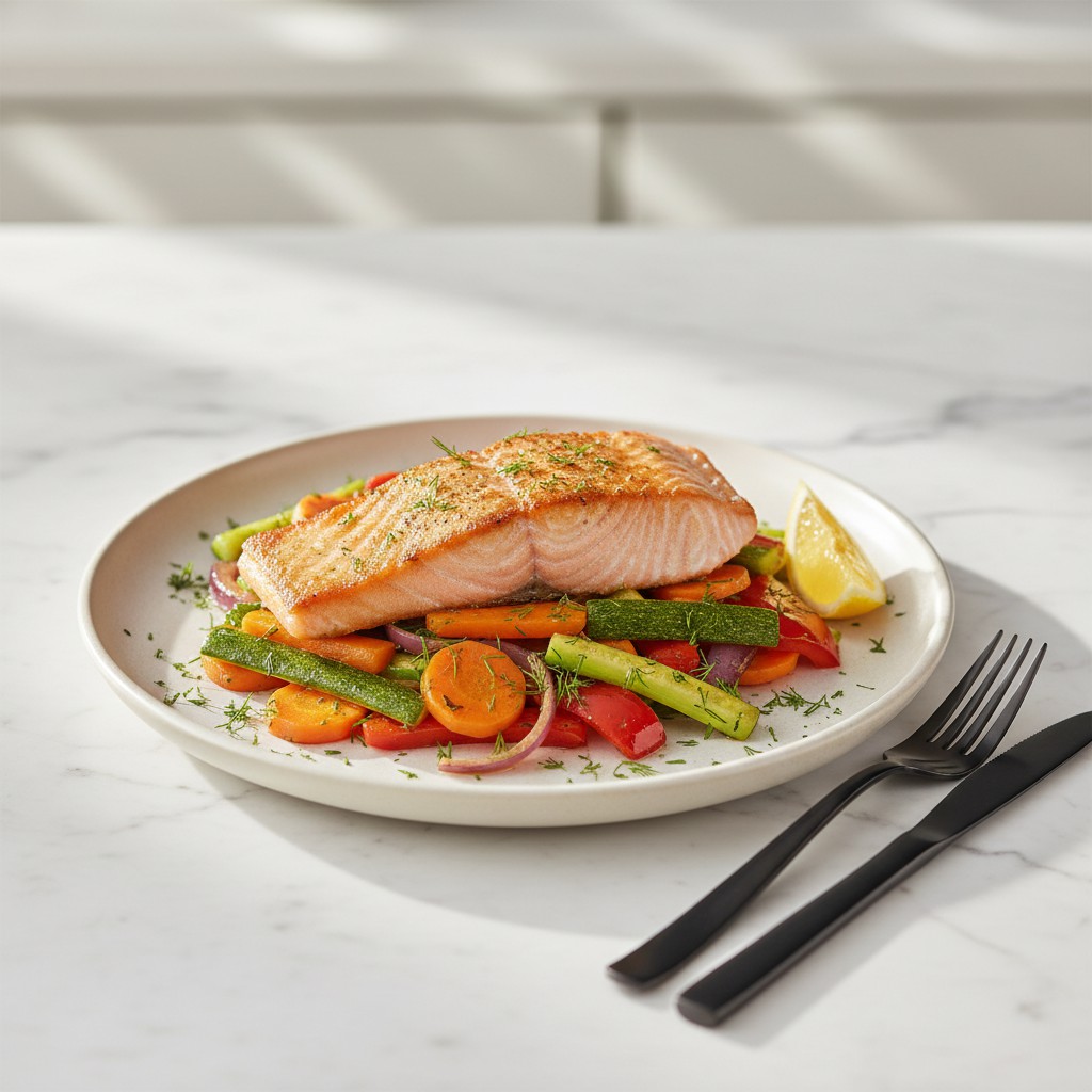Une recette simple et équilibrée de saumon poêlé accompagné de légumes croquants et parfumés à l’aneth. Ce plat léger et savoureux met en valeur la fraîcheur des ingrédients et convient parfaitement à un repas sain et rapide.