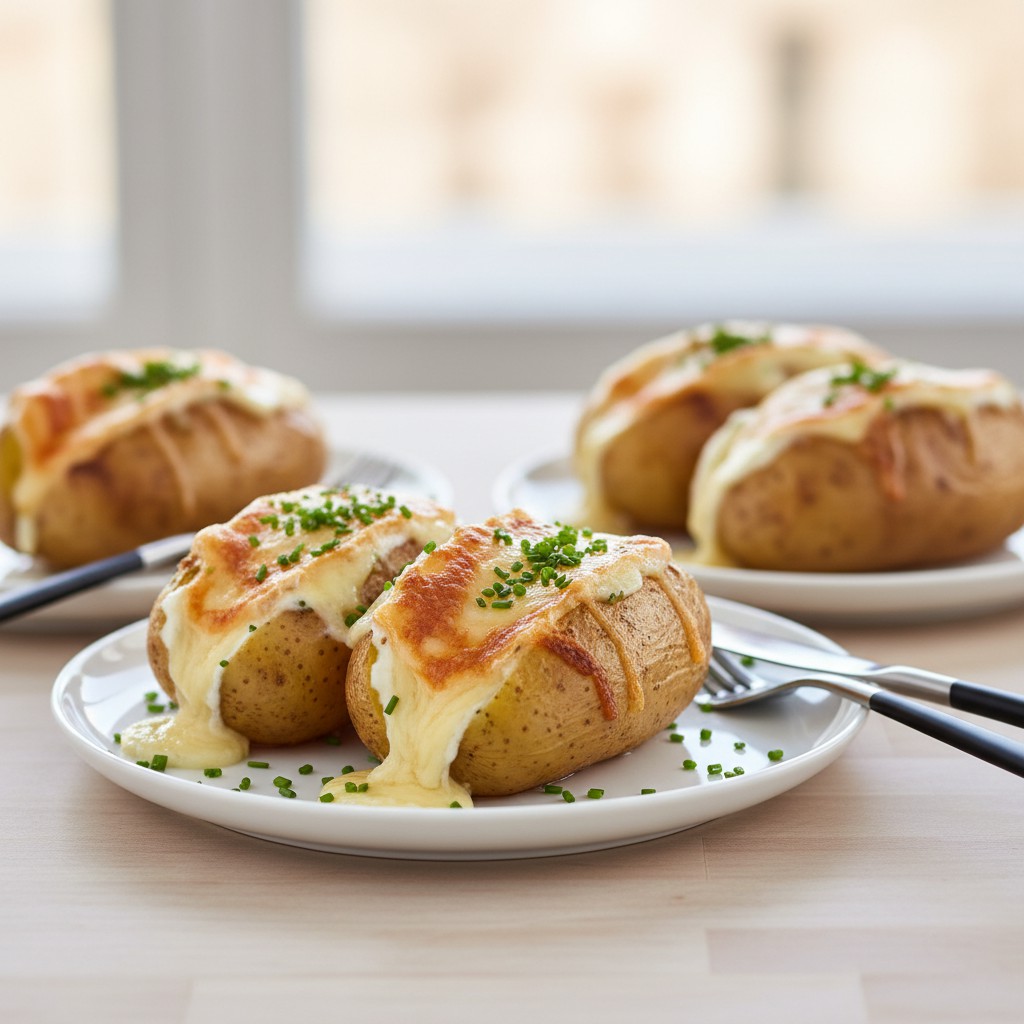 - Sortez les pommes de terre du four et parsemez-les de ciboulette ciselée pour une touche de fraîcheur. Servez immédiatement, accompagnées d’une salade verte pour équilibrer le repas.