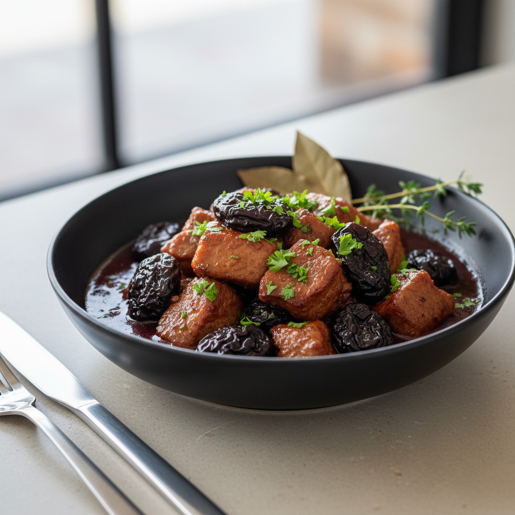 Le porc aux pruneaux et vin rouge est un classique de la cuisine française, apprécié pour son alliance subtile de saveurs sucrées-salées. Ce plat mijoté, originaire du Sud-Ouest, marie la tendreté du porc à la douceur acidulée des pruneaux, le tout relevé par la profondeur aromatique du vin rouge. Il offre un équilibre nutritionnel intéressant, associant protéines maigres, fibres et antioxydants naturels. Accessible et convivial, il se prête aussi bien aux repas familiaux qu’aux grandes occasions. La réussite de ce plat repose sur la maîtrise de la cuisson lente et l’harmonie des assaisonnements.