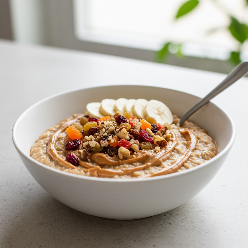 Un porridge crémeux et nourrissant, enrichi de beurre de cacahuète et garni de fruits secs pour un petit-déjeuner équilibré et énergétique. Cette recette rapide est idéale pour bien commencer la journée avec des saveurs gourmandes et des apports nutritionnels complets.