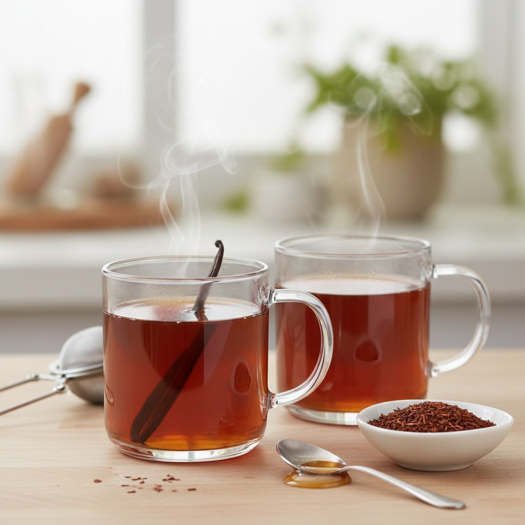 Découvrez comment préparer une tisane au rooibos et à la vanille, une boisson naturellement sans caféine, idéale pour se détendre. Cette infusion douce et parfumée est parfaite pour une pause bien-être à tout moment de la journée.