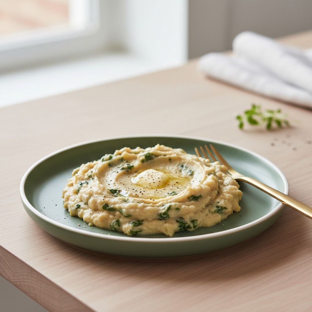 - Égouttez les légumes en réservant une petite louche d’eau de cuisson. Placez-les dans un mixeur ou utilisez un presse-purée. Ajoutez le lait, le beurre, la noix de muscade, le sel et le poivre. Mixez ou écrasez jusqu’à obtenir une texture lisse et homogène. Ajustez la consistance avec un peu d’eau de cuisson si nécessaire.