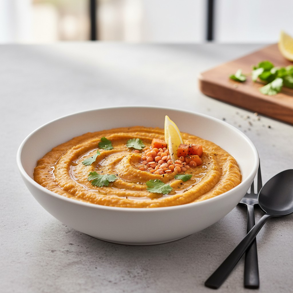 La purée de lentilles corail et carottes est un plat végétarien d’inspiration orientale, apprécié pour sa douceur, sa texture onctueuse et sa richesse nutritionnelle. Cette recette associe la saveur légèrement sucrée des carottes à la finesse des lentilles corail, sources de protéines végétales et de fibres. Facile à réaliser, elle constitue une excellente alternative aux purées classiques, tout en apportant une belle couleur et un profil nutritionnel équilibré. Traditionnellement consommée dans de nombreux pays d’Asie et du Moyen-Orient, la lentille corail se prête parfaitement à ce type de préparation, idéale pour accompagner un plat principal ou servir de base à un repas végétarien complet.