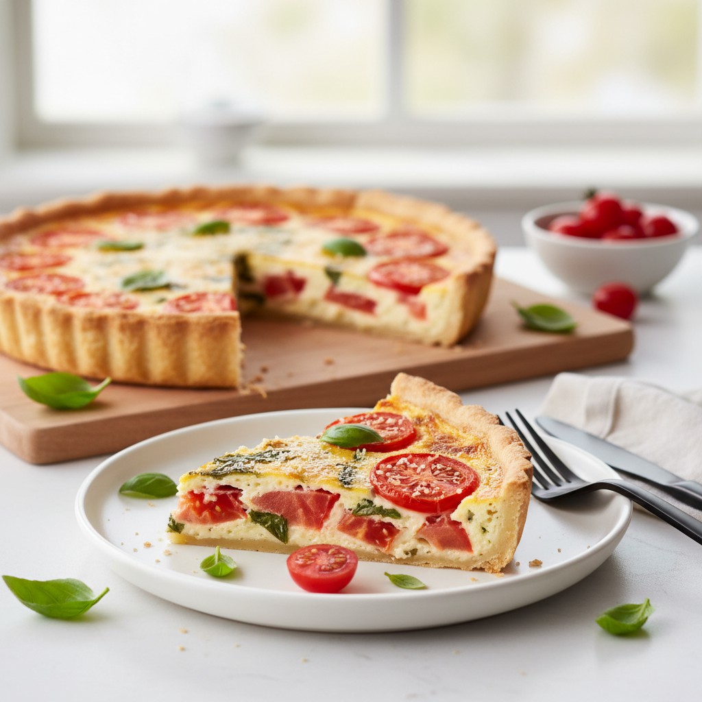 Cette quiche aux tomates fraîches et basilic est une recette simple et savoureuse, parfaite pour un repas léger ou un pique-nique. Inspirée des saveurs méditerranéennes, elle allie la douceur des tomates à la fraîcheur du basilic, le tout sur une pâte croustillante.