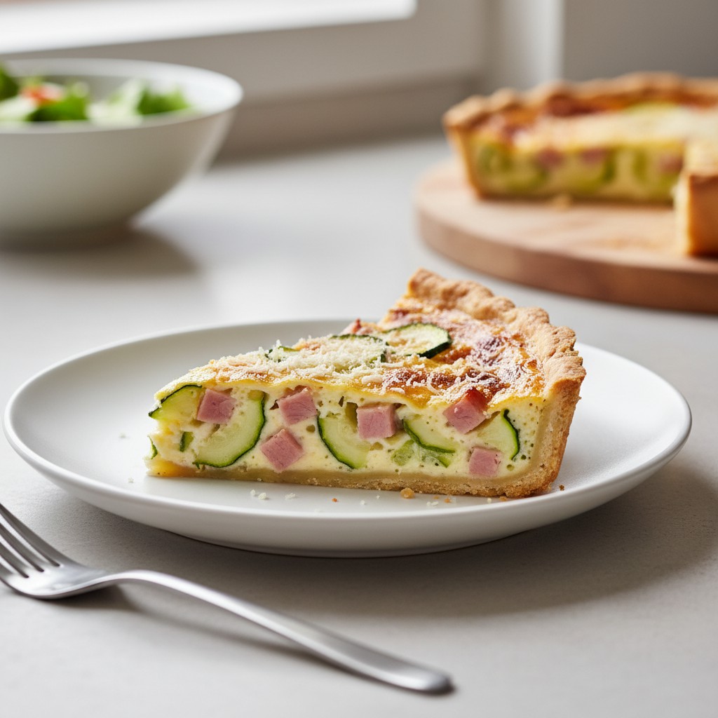 Cette quiche aux courgettes et jambon est une recette simple et équilibrée, parfaite pour un repas rapide ou un pique-nique. Originaire de la tradition française des quiches, elle associe la douceur des courgettes à la saveur du jambon, le tout dans une pâte croustillante. Une option idéale pour toute la famille.