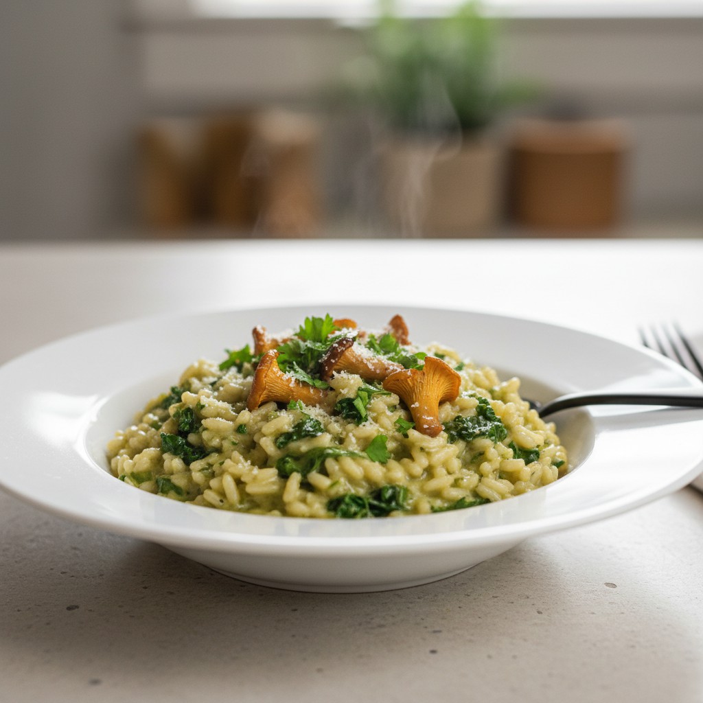 Ce risotto associe la douceur du chou kale à la saveur boisée des champignons sauvages. Une recette crémeuse et réconfortante, idéale pour un repas équilibré et gourmand. Inspirée de la tradition italienne, elle met en valeur des ingrédients simples et nutritifs.