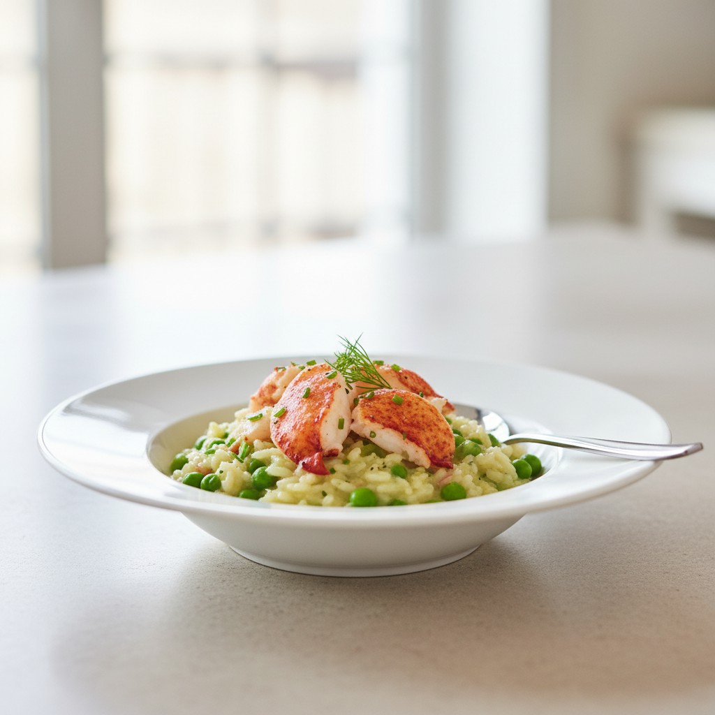 Ce risotto au homard et petits pois marie la délicatesse du crustacé à la douceur végétale des petits pois, pour un plat raffiné mais accessible. Inspiré de la tradition italienne du risotto, il met en valeur la technique du riz crémeux, tout en respectant l’équilibre nutritionnel grâce à l’apport de protéines maigres et de légumes. Le homard, ingrédient festif, est ici sublimé sans excès de matière grasse ni complexité inutile. Ce plat, emblématique des grandes tables comme des repas de fête, permet de découvrir la subtilité des saveurs marines alliées à la fraîcheur printanière des petits pois. La recette détaille chaque geste clé pour garantir la réussite, même pour un cuisinier amateur exigeant.