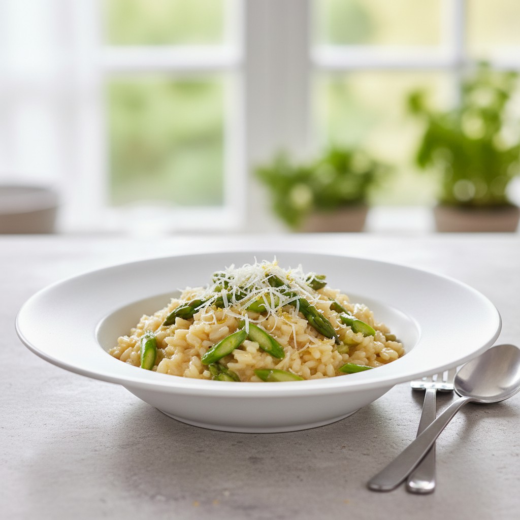 Le risotto aux asperges et vin blanc est un classique du printemps, emblématique de la cuisine du nord de l’Italie. Ce plat crémeux met en valeur la délicatesse des asperges fraîches, sublimées par la rondeur du riz arborio et la vivacité du vin blanc sec. Traditionnellement servi en entrée ou en plat principal, il allie gourmandise, équilibre nutritionnel (glucides complexes, fibres, protéines végétales) et authenticité. Sa réussite repose sur la maîtrise de la cuisson du riz et l’incorporation progressive du bouillon, pour obtenir une texture onctueuse sans excès de matière grasse. C’est une recette accessible, idéale pour s’initier aux techniques du risotto tout en profitant des produits de saison.