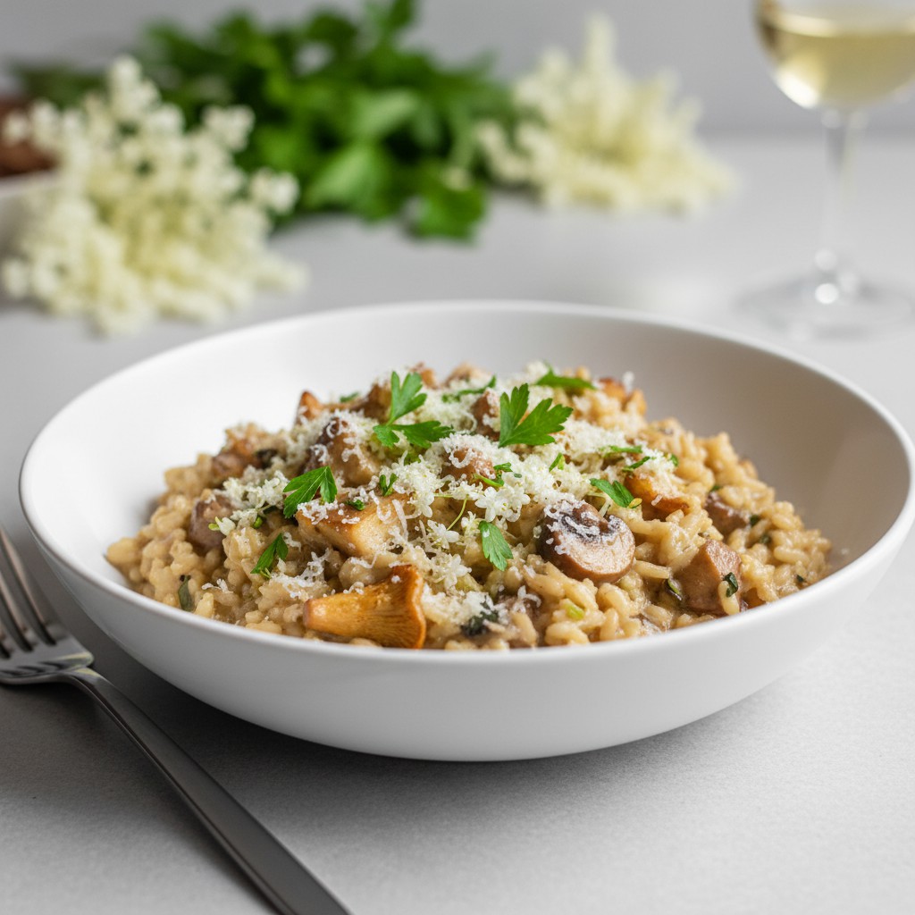 Ce risotto associe la richesse des champignons à la délicatesse florale des fleurs de sureau. Une recette originale et équilibrée, parfaite pour surprendre vos convives tout en respectant les traditions italiennes du risotto.