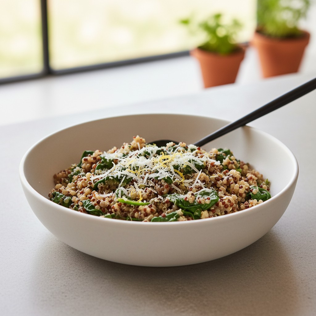 Le risotto de quinoa aux épinards revisite le classique italien en remplaçant le riz par du quinoa, une graine riche en protéines et sans gluten. Cette recette allie onctuosité, saveur végétale et équilibre nutritionnel, tout en restant accessible et rapide à préparer. Originaire d’Amérique du Sud, le quinoa s’intègre ici dans une technique de cuisson à la manière d’un risotto, pour un plat complet, rassasiant et digeste. Idéal pour varier des céréales habituelles, il met en valeur la douceur des épinards et la profondeur d’un bouillon parfumé.