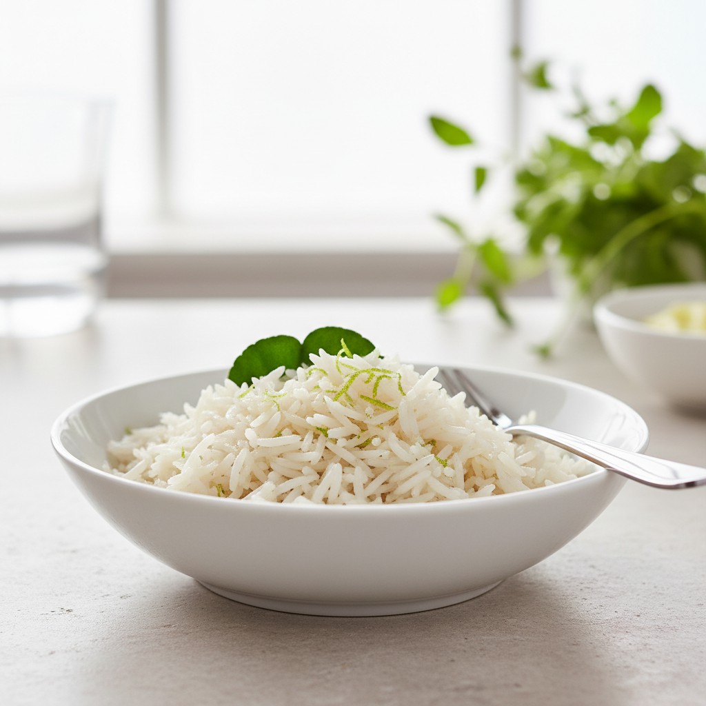 - Retirez la feuille de kaffir et le zeste. Égrenez délicatement le riz à la fourchette pour séparer les grains. Ajoutez éventuellement une cuillère à café d’huile neutre pour la brillance. Servez aussitôt.