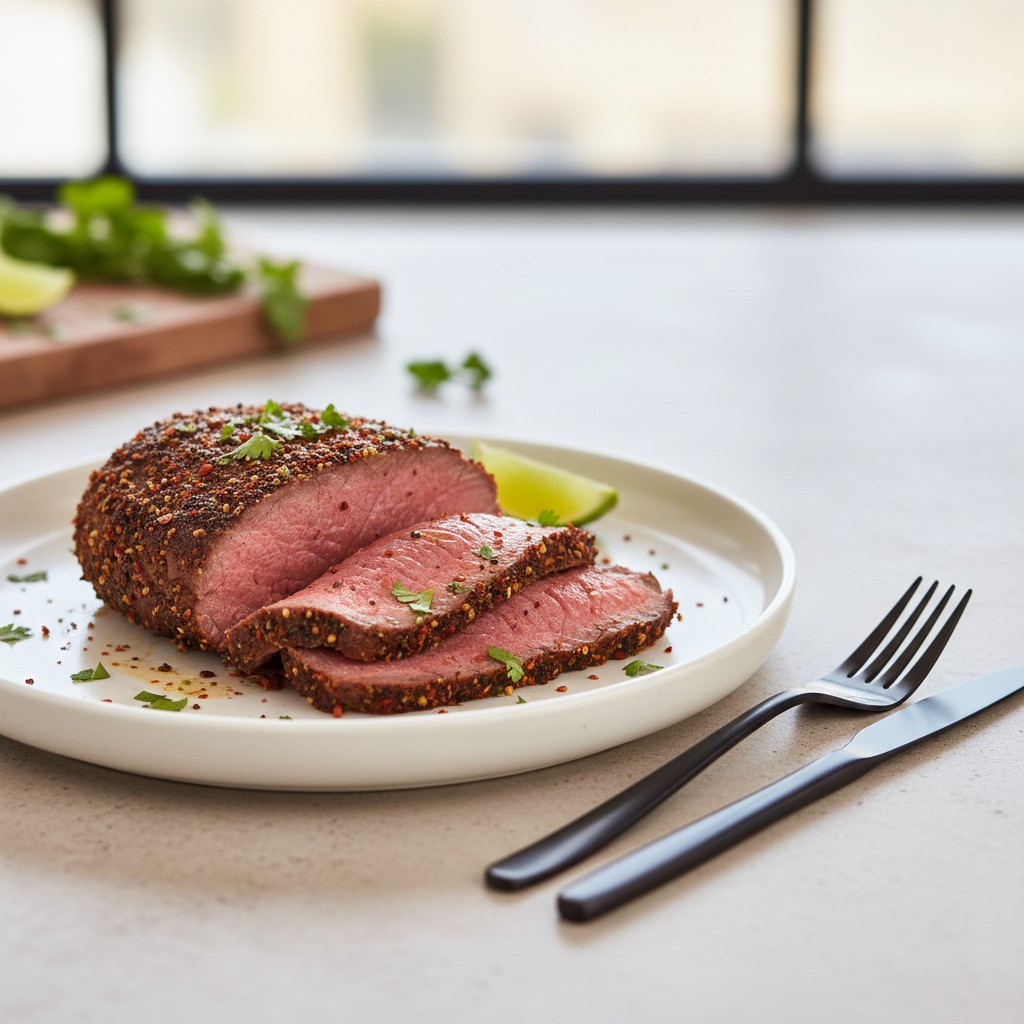 - Croûte d’épices qui brûle : Saisissez à feu vif mais surveillez attentivement, ne laissez pas la viande trop longtemps dans la poêle.