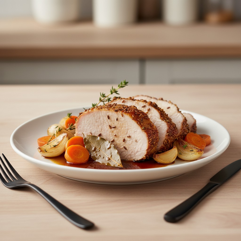 Le rôti de porc à la bière et au cumin est un plat convivial, ancré dans la tradition des cuisines d’Europe centrale et de l’Est, où la bière et les épices relèvent la viande de porc. Cette recette marie la douceur maltée de la bière à la chaleur aromatique du cumin, pour un résultat moelleux, parfumé et accessible. Elle met en avant la simplicité d’une cuisson lente, qui sublime la viande sans la dessécher, tout en offrant un équilibre nutritionnel grâce à l’ajout d’aromates et de légumes. Idéale pour un repas familial ou entre amis, elle permet de comprendre l’importance de la maîtrise des cuissons et des assaisonnements, tout en restant fidèle à l’esprit du terroir.