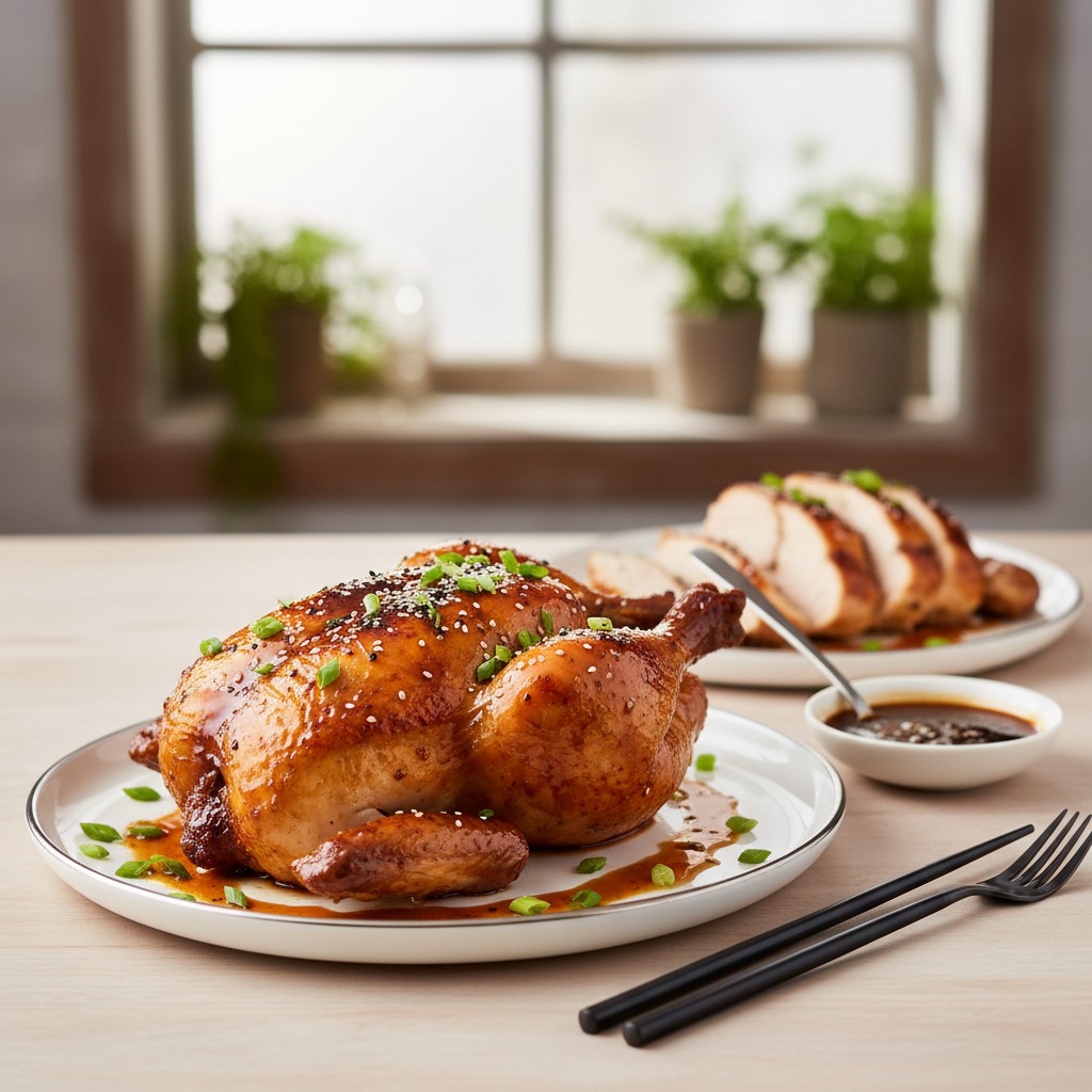 Le rôti de poulet à la sauce teriyaki marie la tendreté d’un poulet rôti à la douceur salée de la célèbre sauce japonaise. Cette recette, inspirée de la tradition culinaire nipponne, revisite le classique rôti dominical en lui apportant une touche d’umami et de brillance. Elle séduit par son équilibre entre simplicité d’exécution, richesse aromatique et profil nutritionnel maîtrisé : la cuisson au four préserve la jutosité de la viande tout en limitant l’ajout de matières grasses. Idéale pour un repas convivial, elle permet aussi de découvrir la subtilité de la cuisine japonaise sans ingrédients gadgets ni techniques complexes.