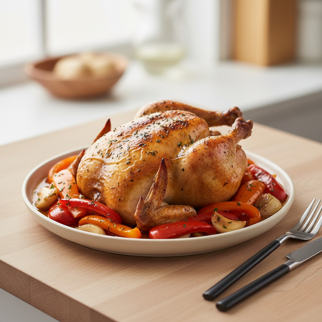 Le rôti de poulet aux piments doux est une recette conviviale et parfumée, qui met en valeur la tendreté du poulet rôti associée à la douceur subtile des piments doux. Ce plat, inspiré des cuisines méditerranéennes et du sud-ouest de la France, offre un équilibre entre chaleur aromatique et saveurs rondes, sans excès de piquant. Idéal pour un repas familial ou un déjeuner dominical, il se distingue par sa simplicité d’exécution, son apport nutritionnel équilibré (protéines maigres, légumes riches en antioxydants) et sa capacité à rassembler autour d’une table. La cuisson au four permet d’obtenir une peau croustillante et une chair juteuse, tandis que les piments doux apportent couleur et douceur. Cette recette valorise le “fait maison” sans complexité inutile, tout en garantissant un résultat savoureux et sain.