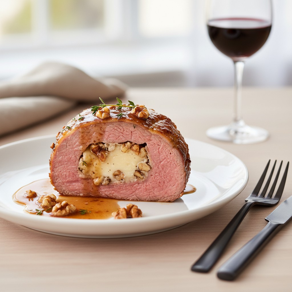 Le rôti de veau aux noix et au fromage est une recette raffinée, ancrée dans la tradition des cuisines régionales françaises où l’on valorise la tendreté du veau et la richesse des saveurs. L’association des noix croquantes et du fromage fondant apporte une texture contrastée et une profondeur aromatique, tout en respectant l’équilibre nutritionnel : protéines maigres, bons lipides et calcium. Cette recette, accessible mais exigeante sur la maîtrise de la cuisson, met en avant la générosité du terroir et la convivialité d’un plat à partager. Elle s’inspire des classiques du Sud-Ouest et du Piémont italien, où l’on marie souvent viande blanche et fruits secs.