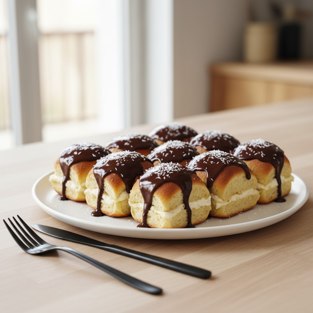 Ces roulés à la crème façon Bounty revisitent le célèbre mariage coco-chocolat sous forme de petites brioches moelleuses garnies d’une crème coco onctueuse, puis nappées de chocolat noir. Inspirés de la confiserie iconique créée dans les années 1950, ils offrent une expérience gourmande et équilibrée, tout en restant accessibles à réaliser à la maison. La pâte à brioche légère contraste avec la douceur de la crème coco, et l’enrobage chocolaté apporte la touche finale. Idéal pour un goûter ou un dessert convivial, ce classique revisité met en avant la générosité et l’authenticité, sans excès de sucre ni d’ingrédients gadgets.