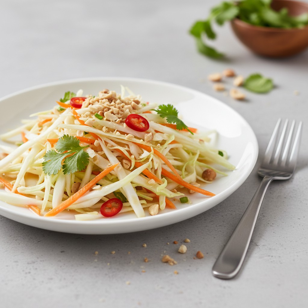 Découvrez une salade de chou d’inspiration vietnamienne, légère et croquante, sublimée par une sauce nuoc-mâm équilibrée. Parfaite en accompagnement ou en plat principal, cette recette allie fraîcheur et authenticité.