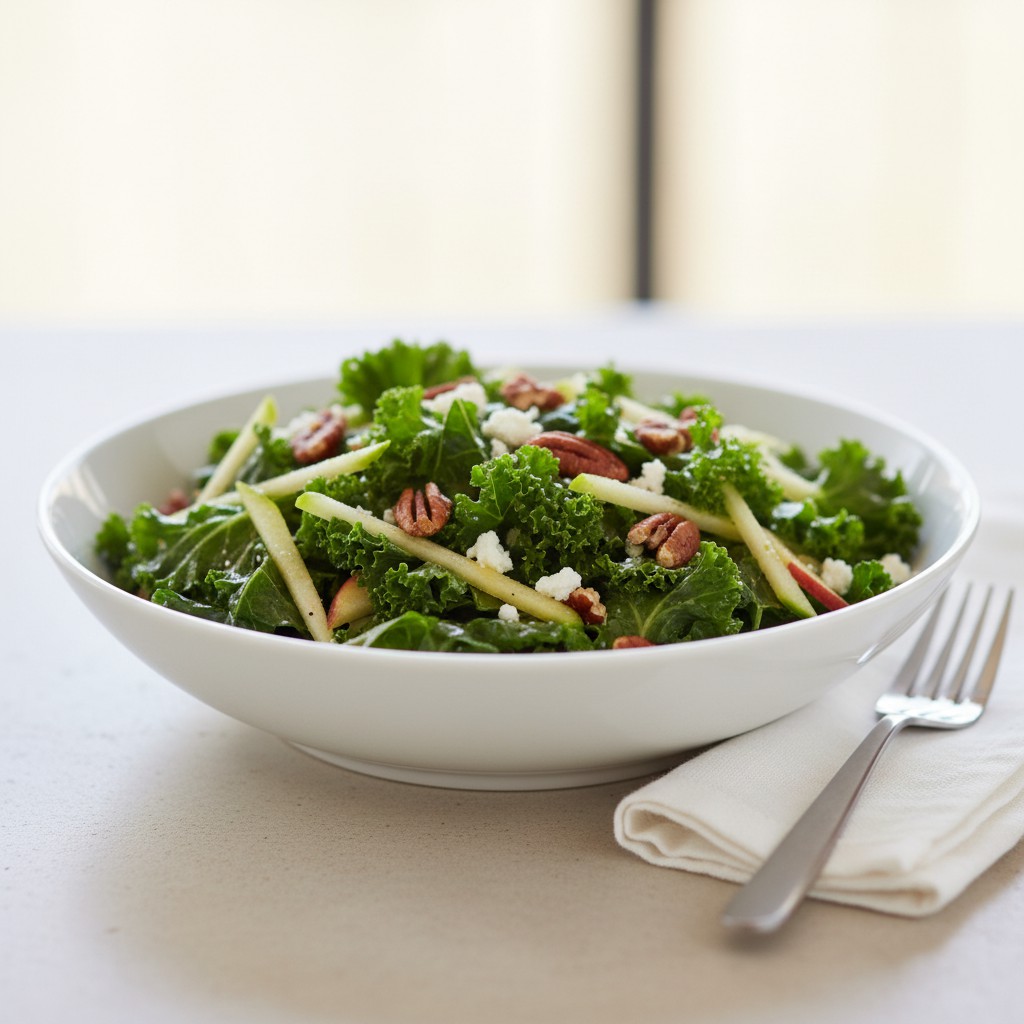 Cette salade de chou kale aux noix de pécan est une option saine et croquante, parfaite pour un repas léger ou en accompagnement. Le chou kale, massé pour une texture plus tendre, est sublimé par le croquant des noix de pécan et une vinaigrette citronnée maison. Une recette simple et nutritive, riche en fibres et en bons gras.