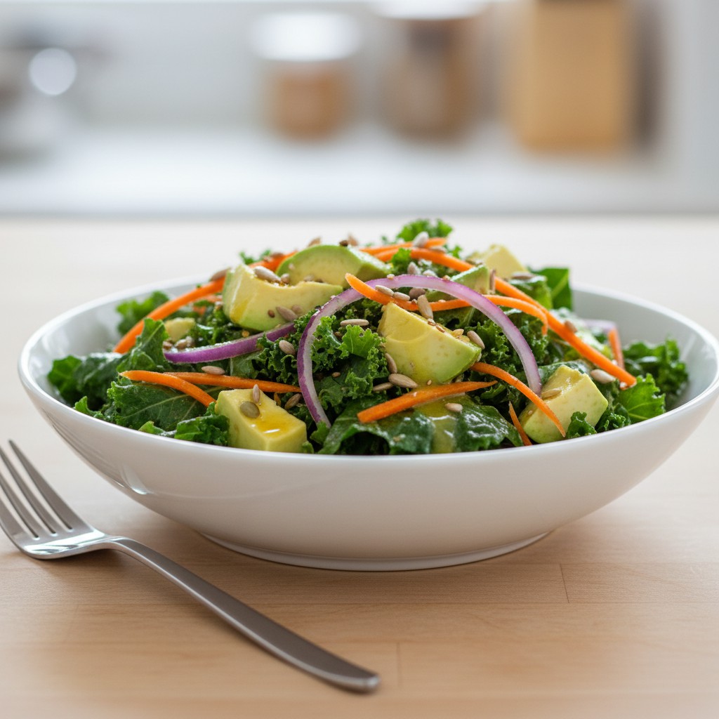 Une salade nutritive et rafraîchissante à base de chou kale et d’avocat, accompagnée d’une vinaigrette citronnée. Parfaite pour un repas léger ou en accompagnement, cette recette met en valeur les bienfaits du chou kale et la douceur de l’avocat.