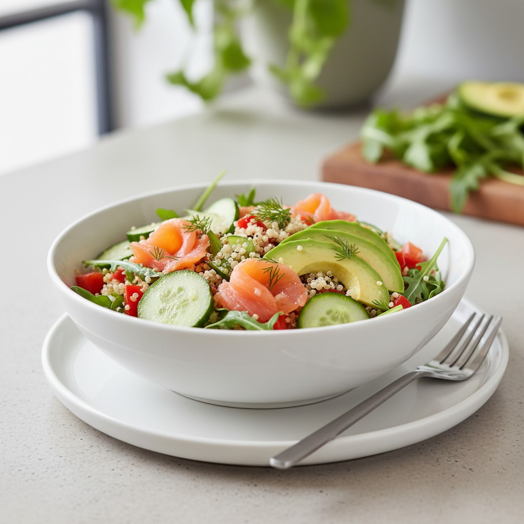 Une salade de quinoa équilibrée et savoureuse, associant la douceur du saumon fumé à la fraîcheur des légumes croquants. Parfaite pour un repas léger et nutritif, cette recette met en avant des ingrédients simples et sains, tout en offrant une explosion de saveurs et de textures.