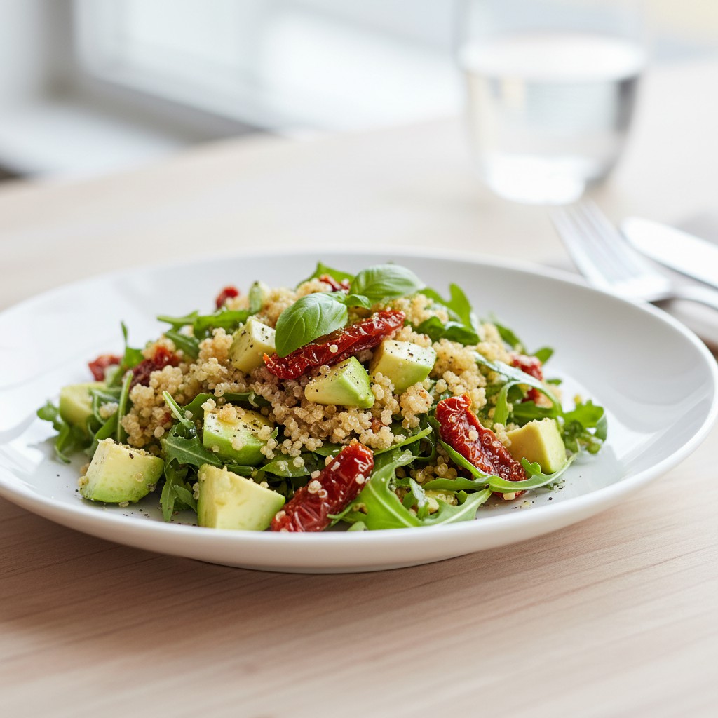Cette salade de quinoa aux tomates séchées et avocat est une option saine, équilibrée et savoureuse. Parfaite pour un déjeuner léger ou un accompagnement, elle combine la douceur de l’avocat, le goût intense des tomates séchées et la texture moelleuse du quinoa. Inspirée des saveurs méditerranéennes, cette recette est rapide à préparer et idéale pour les amateurs de cuisine saine.