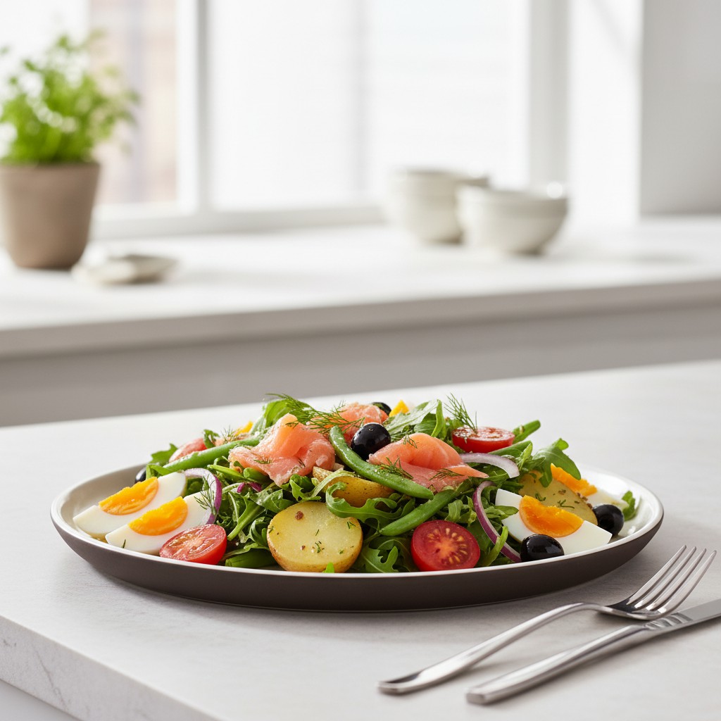 Une version revisitée de la salade niçoise, où le saumon remplace le thon traditionnel et l’aneth apporte une touche aromatique. Cette recette équilibrée et fraîche est idéale pour un repas léger et savoureux, tout en respectant les bases de la cuisine méditerranéenne.