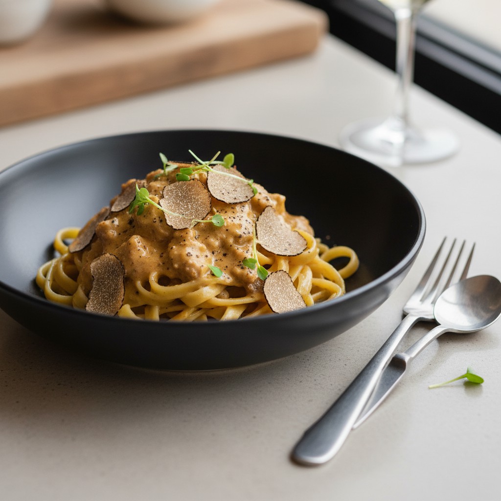 - Servez immédiatement la sauce chaude sur des viandes grillées, des pâtes fraîches ou des légumes vapeur. Pour une présentation élégante, ajoutez quelques lamelles de truffe sur le dessus.