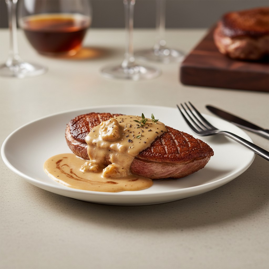 Cette sauce au cognac et foie gras est un accompagnement raffiné et onctueux, parfait pour sublimer vos viandes rouges, volailles ou même des plats festifs. Inspirée de la gastronomie française, elle allie la richesse du foie gras à la profondeur aromatique du cognac.