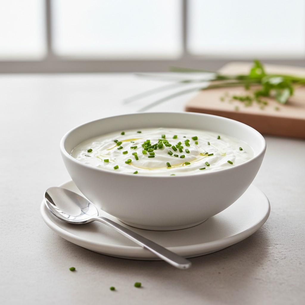 Cette sauce au yaourt et ciboulette est une préparation simple et rapide, idéale pour accompagner crudités, viandes grillées ou poissons. Légère et savoureuse, elle s’inscrit parfaitement dans une alimentation équilibrée. Originaire des cuisines méditerranéennes et européennes, elle met en valeur la fraîcheur des herbes aromatiques.