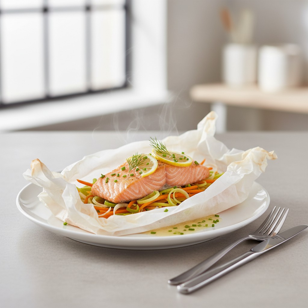 Le saumon en papillote au vin blanc est une préparation emblématique de la cuisine française, alliant simplicité, raffinement et équilibre nutritionnel. Cette technique de cuisson à l’étouffée préserve la tendreté du poisson, concentre les arômes et limite l’ajout de matières grasses. Le vin blanc sec, associé à des herbes fraîches et des légumes, sublime la chair du saumon sans la masquer. Originaire de la tradition bourgeoise du XIXe siècle, la papillote est aujourd’hui plébiscitée pour sa légèreté et sa facilité d’exécution, même pour les cuisiniers débutants. Cette recette met en avant la fraîcheur des ingrédients, la justesse des cuissons et l’harmonie des saveurs, tout en restant accessible et rapide à réaliser.