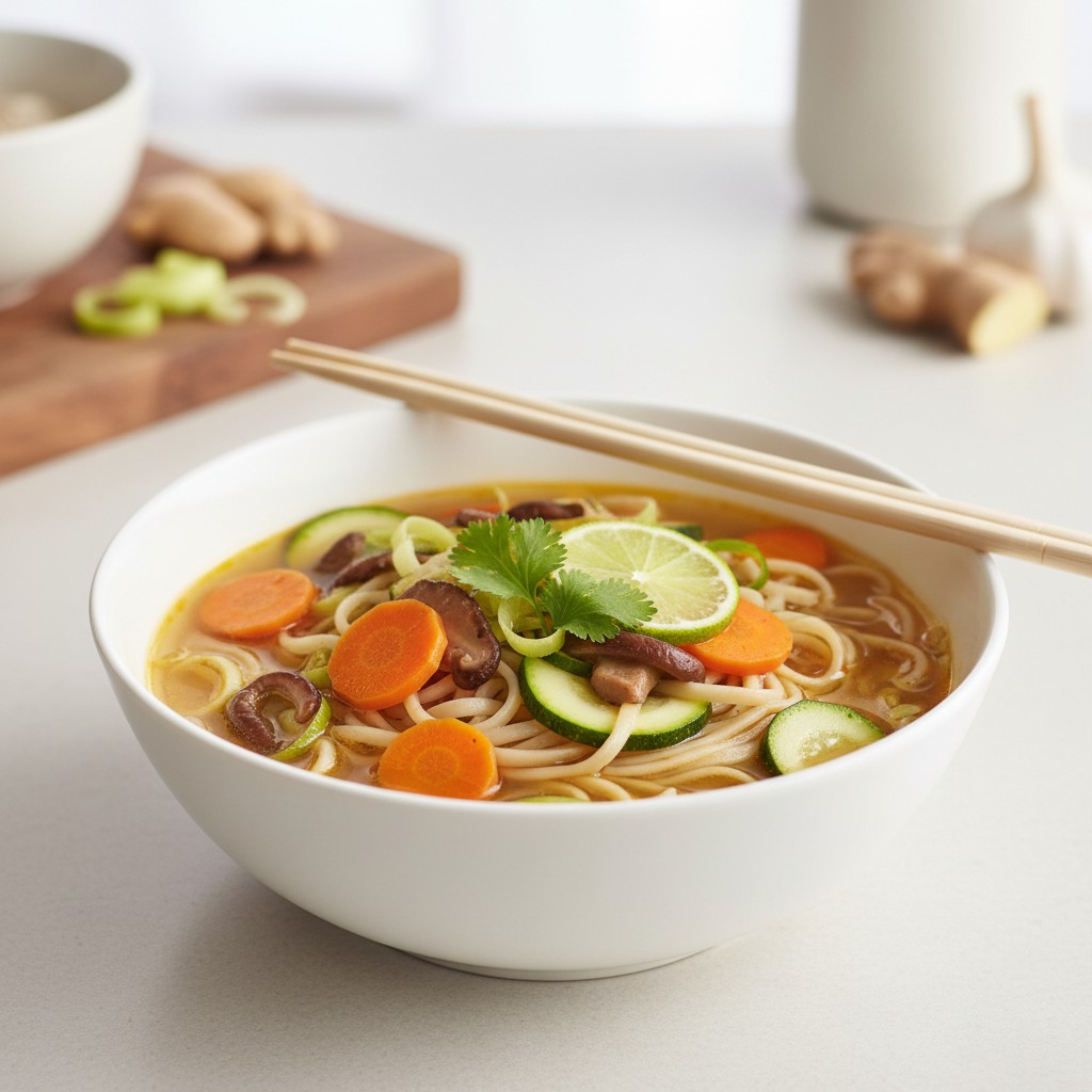 La soupe de nouilles aux légumes est un classique réconfortant, apprécié dans de nombreuses cultures asiatiques pour sa simplicité, sa richesse en saveurs et son équilibre nutritionnel. Cette version met l’accent sur la justesse des cuissons et l’association harmonieuse de légumes variés, pour une soupe à la fois nourrissante, digeste et savoureuse. Idéale pour un repas léger mais complet, elle permet de valoriser les légumes de saison et d’adapter les nouilles selon vos préférences (blé, riz, sarrasin). L’origine de ce plat remonte aux soupes populaires d’Asie de l’Est, où chaque famille décline sa recette selon les ingrédients du marché et les traditions locales.