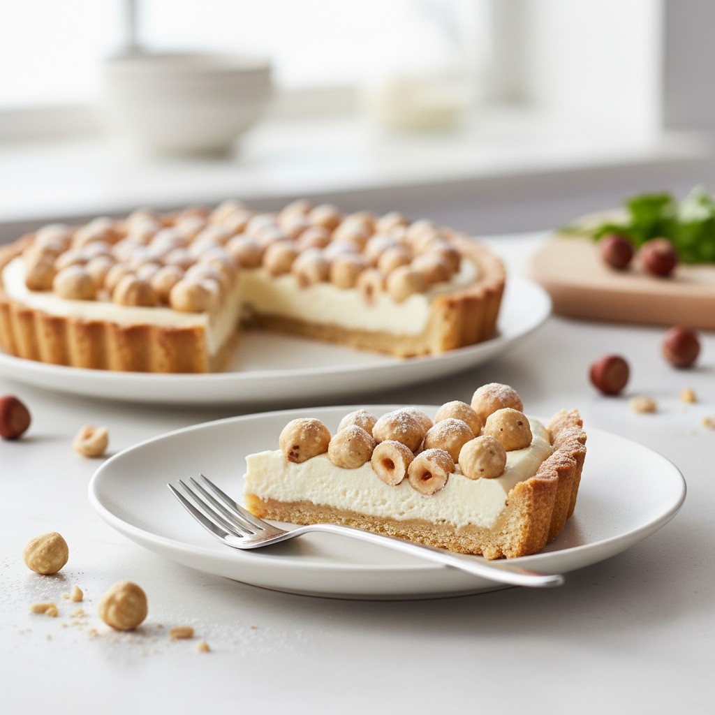 - Enfournez la tarte à 180°C pendant 15 minutes, jusqu’à ce que les noisettes soient légèrement dorées. Laissez refroidir avant de servir.
