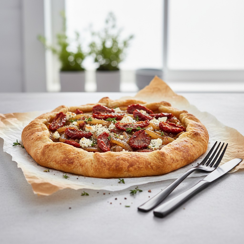 Tarte rustique aux tomates séchées et oignons caramélisés