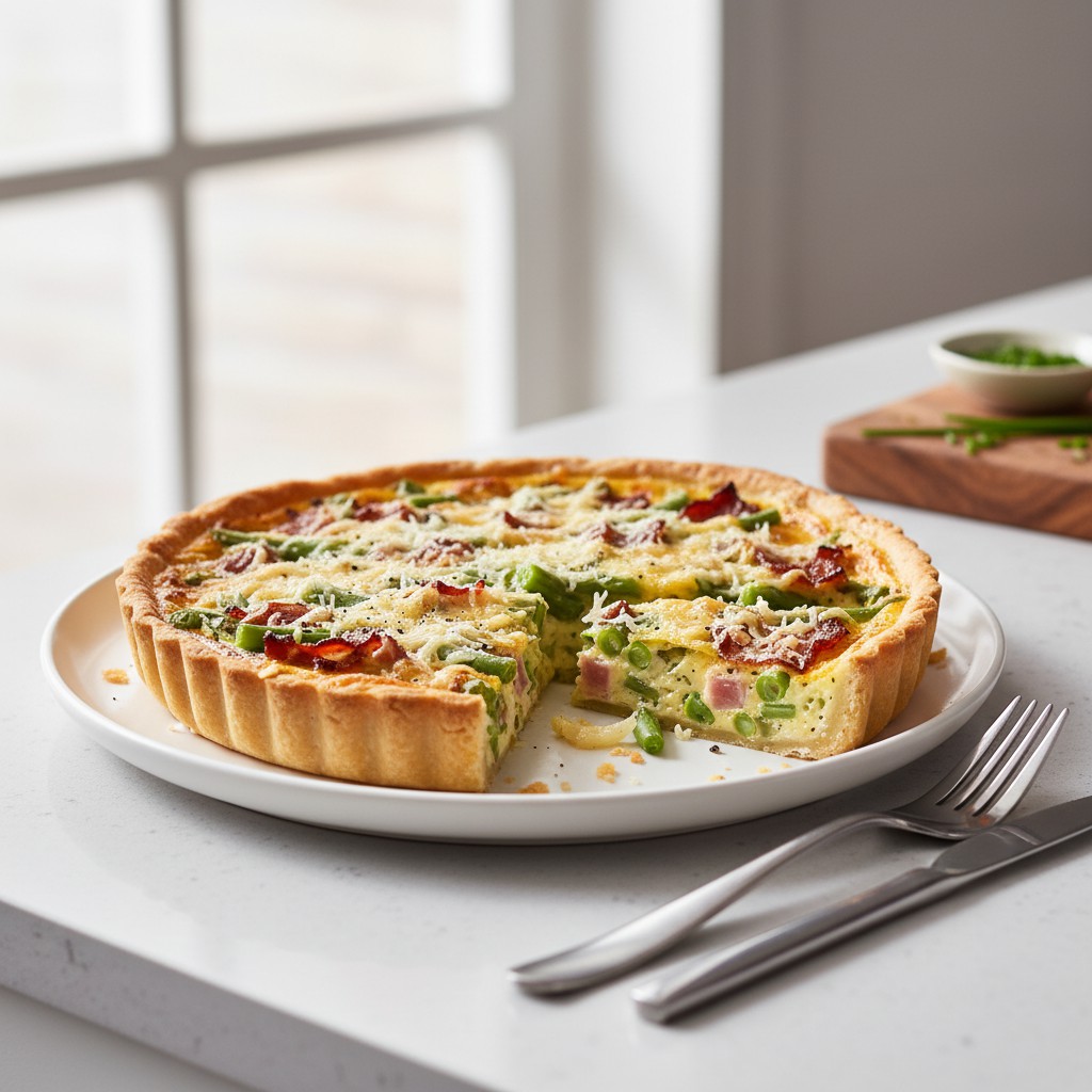 La tarte salée aux haricots verts et lardons est une recette authentique de la cuisine familiale française, idéale pour valoriser des légumes de saison et apporter une touche gourmande grâce aux lardons. Cette tarte, à la fois rustique et équilibrée, marie la douceur des haricots verts à la saveur fumée des lardons, le tout lié par un appareil crémeux. Facile à réaliser, elle se déguste chaude ou tiède, en plat principal ou en entrée. Son origine remonte aux tartes paysannes, qui permettaient d’utiliser les légumes du potager et les restes de charcuterie. Elle illustre parfaitement l’art de la cuisine maison : simple, savoureuse, et accessible, tout en offrant un bon équilibre nutritionnel (protéines, fibres, glucides).