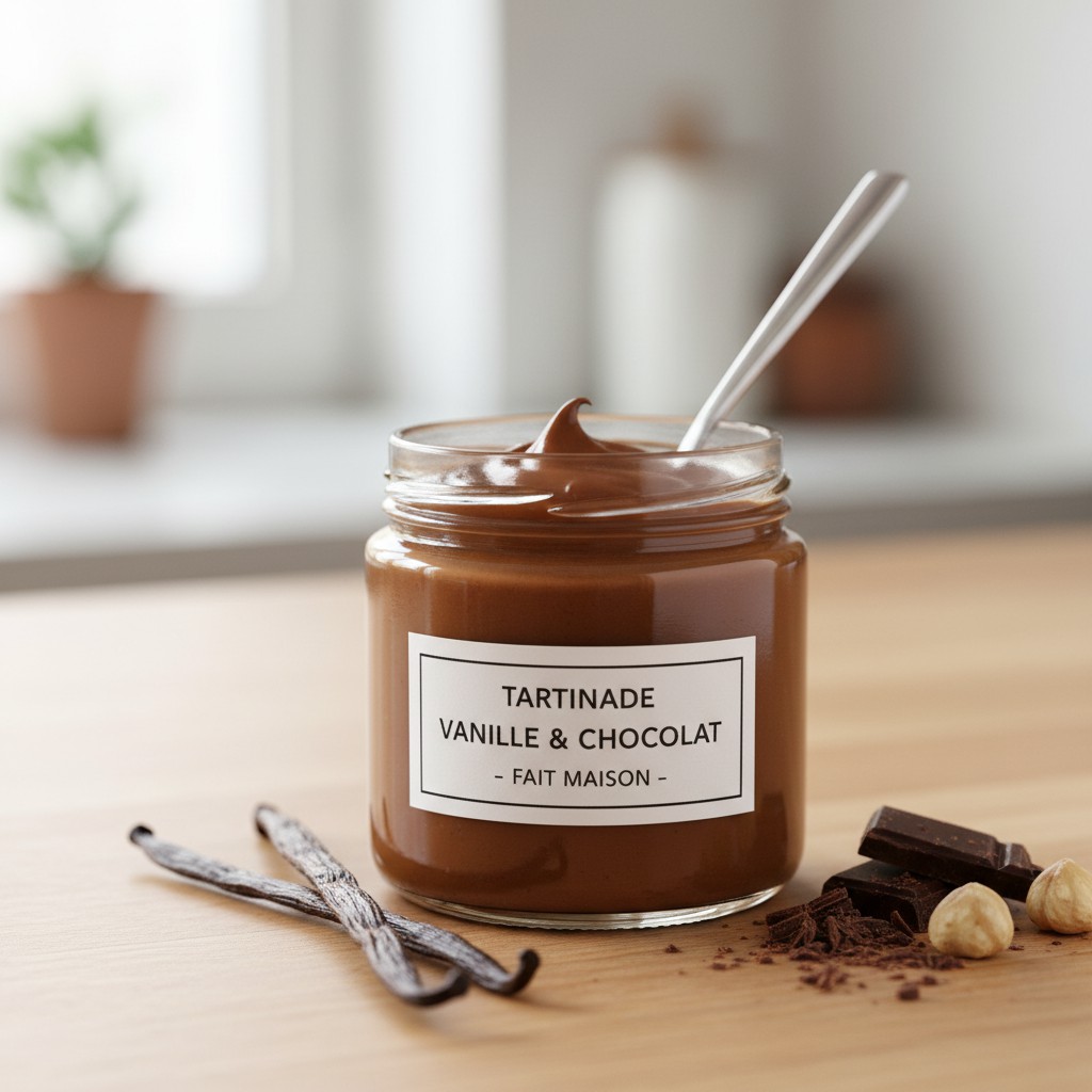 Cette tartinade à la vanille et chocolat marie la douceur de la vanille naturelle à l’intensité du cacao, pour une pâte à tartiner onctueuse, équilibrée et sans excès de sucre. Inspirée des traditions de pâtes à tartiner maison, elle privilégie des ingrédients bruts et une technique simple, accessible à tous, tout en garantissant une texture lisse et un goût authentique. Parfaite pour le petit-déjeuner ou le goûter, elle se distingue par sa richesse aromatique et sa composition maîtrisée, loin des produits ultra-transformés. L’association vanille-chocolat, classique mais indémodable, trouve ici une expression saine et gourmande, sans huile de palme ni additifs inutiles.
