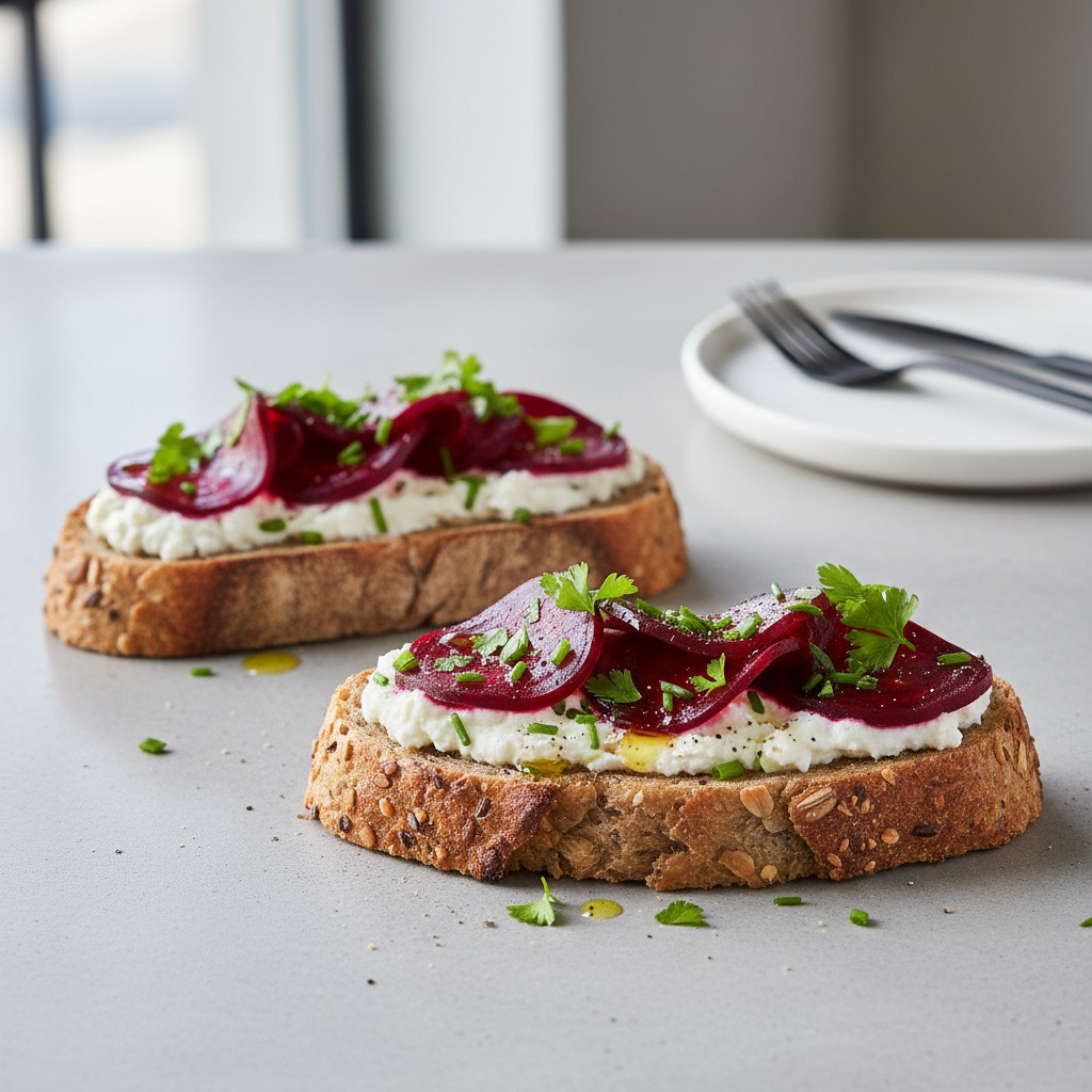 Une recette simple et équilibrée de tartine gourmande, combinant la douceur de la betterave, la fraîcheur du chèvre et le parfum des herbes. Parfaite pour un déjeuner léger ou une entrée raffinée, cette préparation met en valeur des ingrédients frais et savoureux.