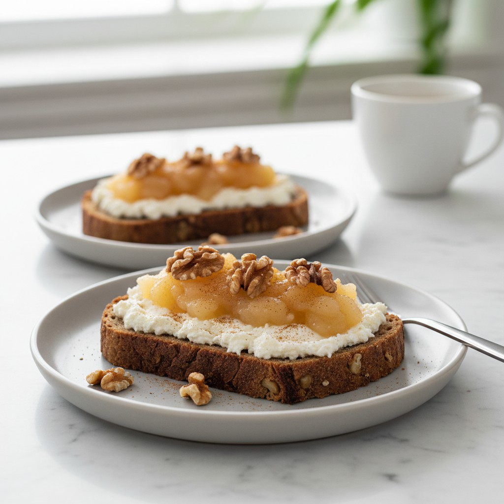 Une recette simple et gourmande de tartine associant le croquant du pain aux noix, la douceur de la compote de pomme et l’onctuosité du fromage à tartiner. Parfaite pour un petit-déjeuner équilibré ou un en-cas rapide.