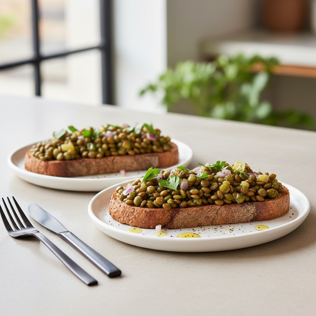 Une recette simple et équilibrée de tartine à base de pain complet, garnie de lentilles vertes riches en protéines et d’une vinaigrette légère au citron. Parfaite pour un déjeuner rapide ou un dîner léger, cette tartine allie saveurs et bienfaits nutritionnels.