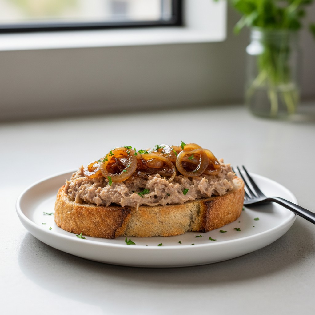 Une recette simple et gourmande de tartine de pain de campagne garnie de rillettes de canard onctueuses et d’oignons caramélisés. Parfaite pour un apéritif, un brunch ou un repas léger, cette préparation allie des saveurs rustiques et réconfortantes.