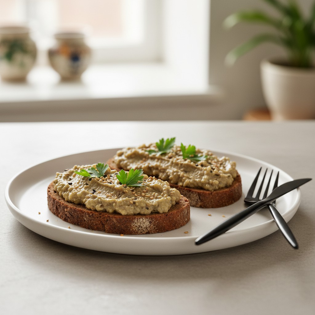 Tartine de pain de seigle au caviar d’aubergine maison