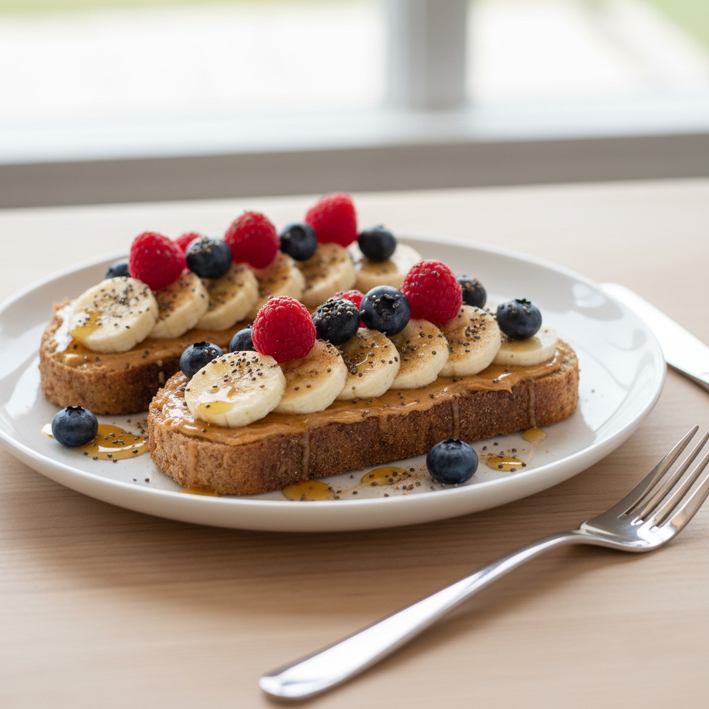Tartines au pain complet avec beurre de cacahuète et garnitures équilibrées