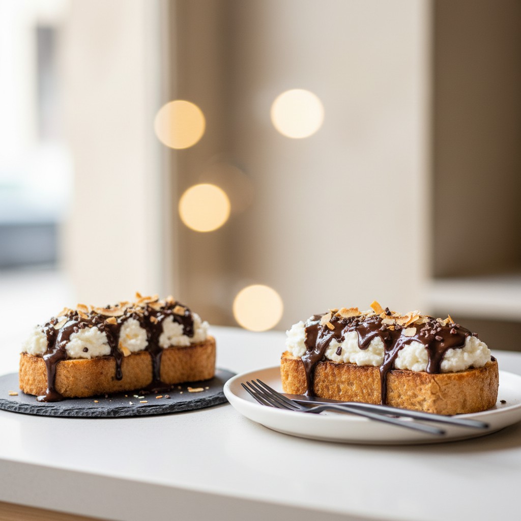 Ces tartines chocolatées façon Bounty revisitent le célèbre mariage coco-chocolat sous une forme simple et gourmande, idéale pour le petit-déjeuner ou le goûter. Inspirées de la célèbre confiserie créée dans les années 1950, elles offrent une texture contrastée entre le croustillant du pain, la douceur de la crème coco et la richesse du chocolat noir. Cette recette met l’accent sur l’équilibre nutritionnel : fibres du pain complet, sucres modérés, matières grasses de qualité et possibilité d’adapter selon vos besoins (végétalien, sans gluten, moins sucré).