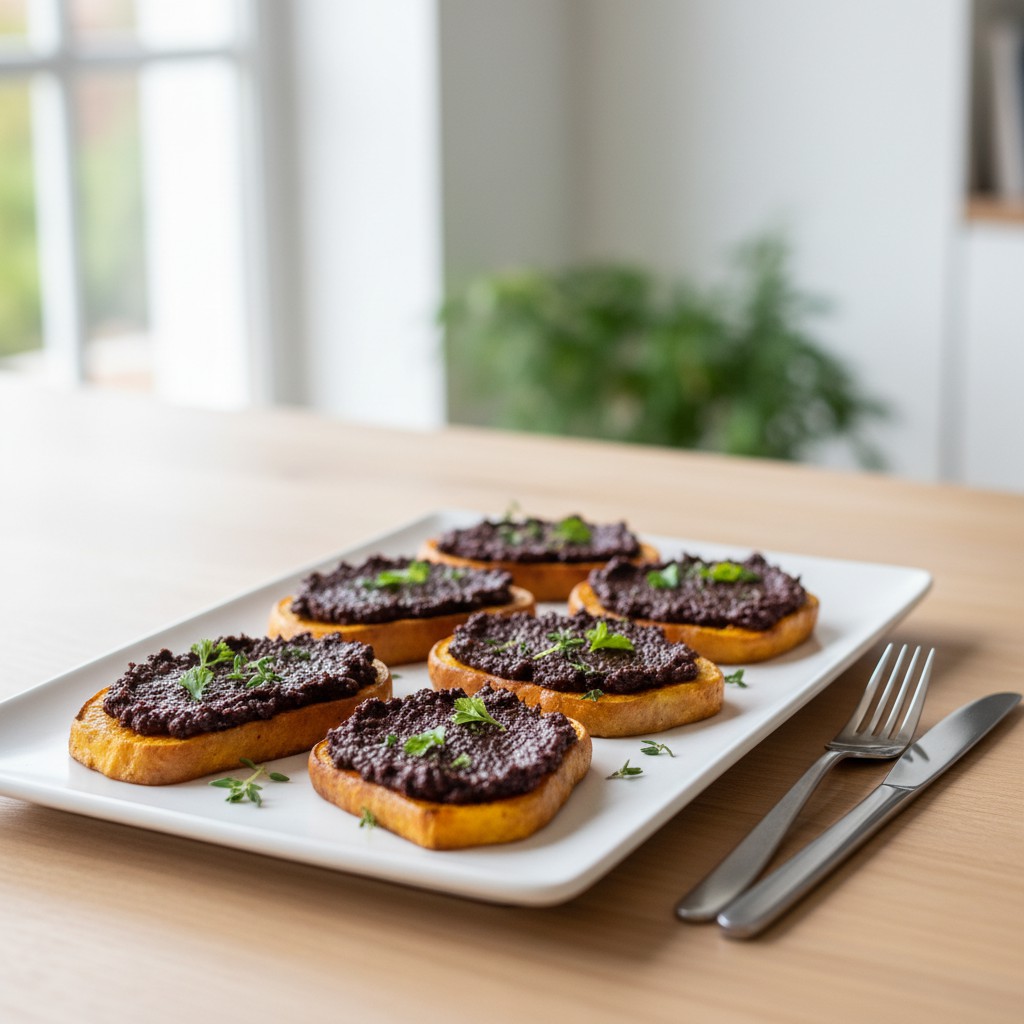 Découvrez une alternative originale et saine aux tartines classiques : des tranches de patate douce rôties, garnies d’une tapenade maison savoureuse. Cette recette méditerranéenne est idéale pour un apéritif, une entrée ou un repas léger, tout en étant naturellement sans gluten.
