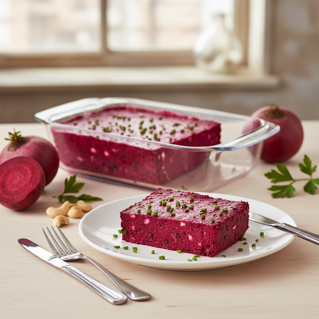 La terrine de betteraves et noix de cajou est une entrée végétarienne colorée, à la fois onctueuse et subtilement croquante. Elle marie la douceur terreuse de la betterave à la richesse crémeuse des noix de cajou, pour un résultat aussi savoureux que nourrissant. Cette recette, inspirée des traditions de la cuisine végétale contemporaine, met en valeur des ingrédients simples et accessibles, tout en offrant une alternative saine et gourmande aux terrines classiques. Parfaite pour un repas festif ou un pique-nique, elle se prépare à l’avance et se déguste aussi bien froide que légèrement tempérée. L’équilibre entre protéines végétales, fibres et bons lipides en fait un choix judicieux pour une alimentation équilibrée.