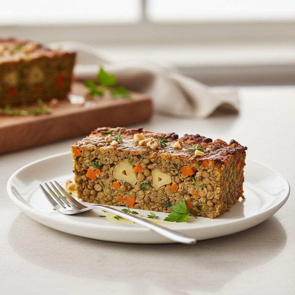 La terrine de lentilles et ail est une préparation végétarienne savoureuse, inspirée des traditions paysannes françaises où la lentille, source de protéines et de fibres, occupe une place de choix. Cette terrine, à la fois rustique et raffinée, se déguste froide ou à température ambiante, en entrée ou en plat principal accompagné d’une salade croquante. Elle met en valeur la douceur de la lentille verte, relevée par la puissance aromatique de l’ail confit et des herbes fraîches. Accessible, économique et rassasiante, cette recette est idéale pour varier les apports en protéines végétales tout en offrant une texture moelleuse et un goût authentique. Elle se prépare à l’avance, se conserve bien et permet de limiter la charge mentale en cuisine.