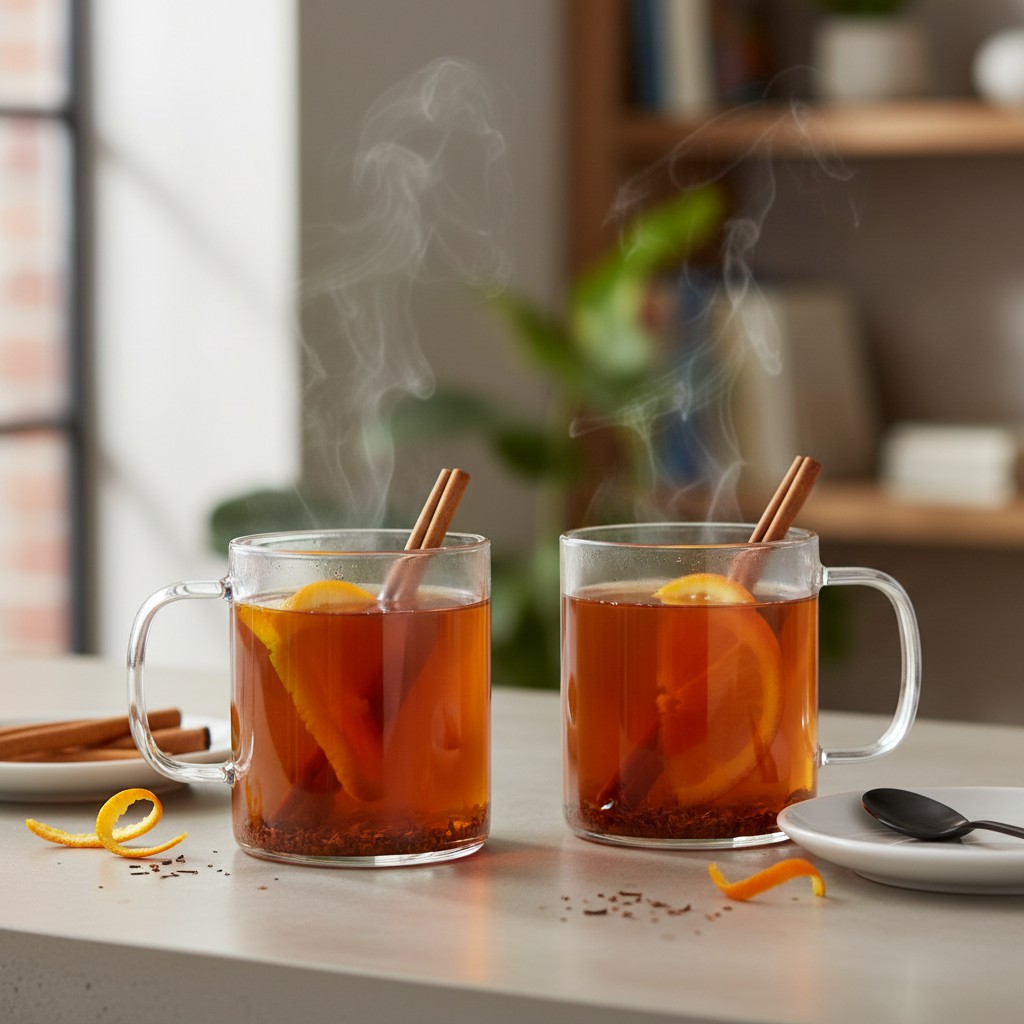 Découvrez une tisane au rooibos et à l’orange, une boisson chaude naturellement sans caféine, idéale pour se détendre. Cette infusion associe les notes douces et boisées du rooibos à la fraîcheur acidulée de l’orange, pour un moment de réconfort et de plaisir. Facile à préparer, elle convient à tous, même en soirée.